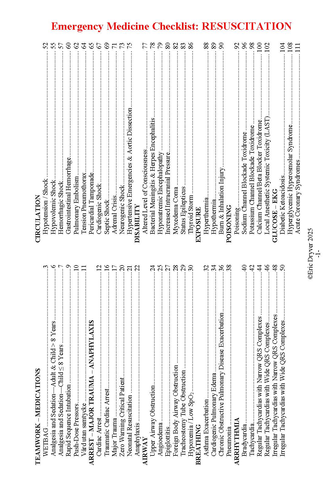 Emergency Medicine is a high-stakes field where decisions need to be taken under time-pressure in the setting of constant interruptions. Checklists are used in other high-stakes fields such as the flight industry, and are increasingly used in health care. This compendium provides: