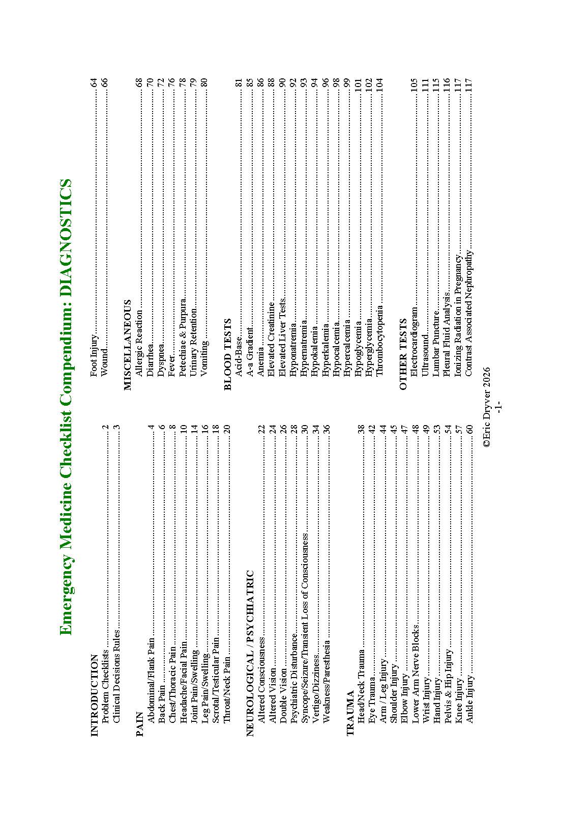 Emergency Medicine Checklist Compendium